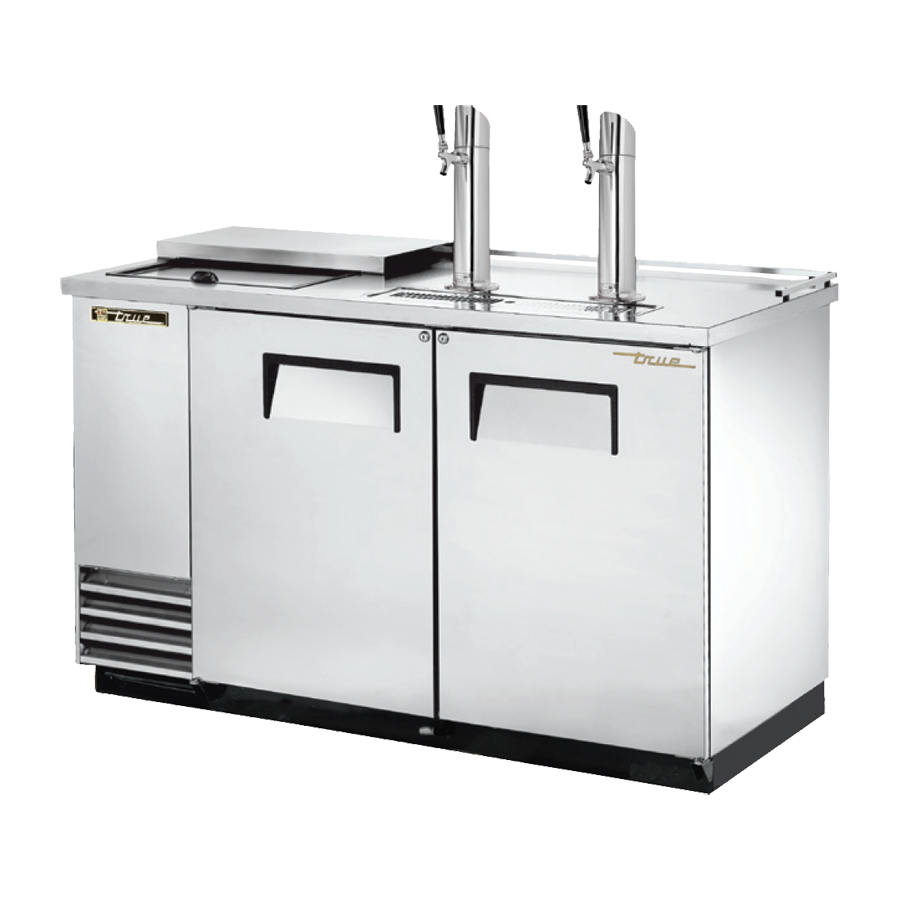Maximize your food service potential with the True Manufacturing TDD-2CT-S-HC Draft Beer Cooler. This commercial-grade cooler is designed to meet the demands of a busy restaurant environment. With a stainless steel counter top and lid, it offers durability and a sleek appearance that will enhance the aesthetics of your establishment. The cooler features two solid hinged doors with locks, ensuring the security of your valuable kegs. Inside, you'll find a PVC coated adjustable wire shelf, providing flexibility for storing different sizes of kegs. The LED interior light illuminates the contents, making it easy to locate and access your favorite brews. The cooler also boasts two 3" dia. insulated beer columns with a single faucet draft arm, allowing you to serve multiple beers simultaneously. Made in the USA and ENERGY STAR certified, this True Manufacturing Draft Beer Cooler combines quality, efficiency, and reliability to elevate your restaurant's beverage service.