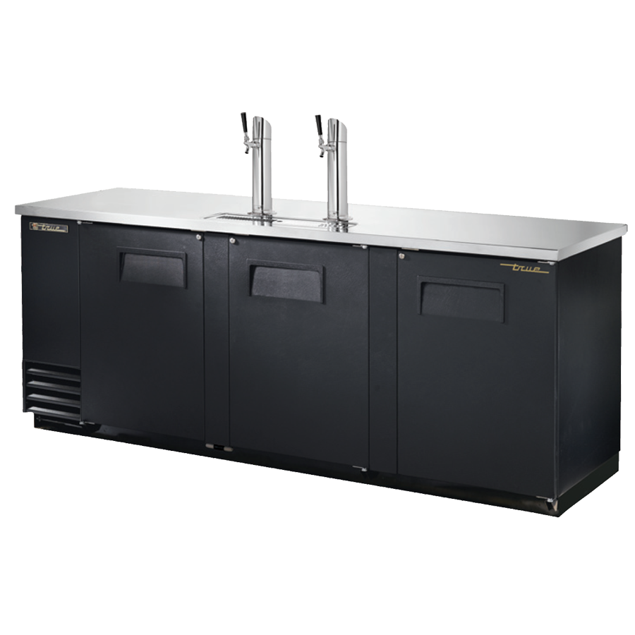 Culinary artistry redefined with True Manufacturing's TDD-4-HC Draft Beer Cooler. This commercial-grade cooler is designed to elevate your restaurant's beverage service to new heights. With a capacity to hold four half kegs, this cooler ensures that you never run out of your customers' favorite brews. The stainless steel countertop provides a sleek and durable surface for serving drinks, while the three solid hinged doors with locks keep your inventory secure. The two insulated beer columns with a single faucet draft arm allow for easy pouring and serving. The black vinyl front and sides exterior add a touch of sophistication to your establishment, while the galvanized interior with a stainless steel floor ensures easy cleaning and maintenance. With its ENERGY STAR certification and use of R290 Hydrocarbon refrigerant, this cooler is not only efficient but also environmentally friendly. Elevate your beverage service with the True Manufacturing TDD-4-HC Draft Beer Cooler.