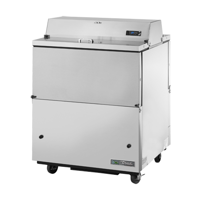 Introducing the True Manufacturing TMC-34-S-DS-SS-HC Milk Cooler / Station, designed to simplify restaurant operations. This mobile milk cooler is a must-have for any commercial restaurant looking to streamline their milk storage and dispensing process. With its forced-air cooling system, it ensures that your milk stays at the perfect temperature of 33 - 38F, keeping it fresh and ready for use. The dual-sided stainless steel drop front/hold-open flip-up lids provide easy access to the milk crates, allowing for quick and efficient restocking. The stainless steel exterior and interior, along with the stainless steel floor, make this milk cooler durable and easy to clean, ensuring optimal hygiene standards. The digital thermometer allows for precise temperature control, while the 4" castors make it easy to move around your kitchen. Made in the USA by True Manufacturing, this milk cooler is not only reliable but also energy-efficient, thanks to its R290 Hydrocarbon refrigerant. Simplify your restaurant operations with the True Manufacturing TMC-34-S-DS-SS-HC Milk Cooler / Station.