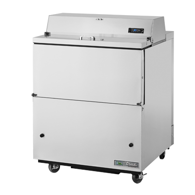 Cooking at its finest begins with the True Manufacturing TMC-34-S-HC Milk Cooler / Station. This mobile milk cooler is designed to meet the demands of a commercial restaurant, ensuring that your milk stays fresh and easily accessible. With its forced-air system and stainless steel drop front/hold-open flip-up lids, this cooler can accommodate up to 8 crates of milk, keeping them at the optimal temperature of 33 - 38F. The stainless steel exterior and aluminum interior with a stainless steel floor not only provide durability but also make cleaning a breeze. The cooler is equipped with (2) heavy-duty floor racks, allowing for efficient organization and storage. The digital thermometer ensures precise temperature control, while the 4" castors make it easy to move the cooler around your kitchen. Made in the USA and certified by cULus and UL EPH Classified, the True Manufacturing TMC-34-S-HC Milk Cooler / Station is a reliable and efficient addition to any commercial restaurant.