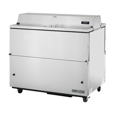 Serve with pride with the True Manufacturing, TMC-49-S-DS-SS-HC Milk Cooler / Station. This mobile milk cooler is perfect for commercial restaurant use, ensuring that your milk stays fresh and easily accessible. With its forced-air cooling system, this cooler maintains a temperature range of 33 - 38F, keeping your milk at the perfect serving temperature. The dual-sided stainless steel drop front/hold-open flip-up lids provide easy access to the 12 crates of milk that this cooler can hold. The stainless steel exterior and interior, along with the stainless steel floor, make this cooler durable and easy to clean. The three heavy-duty floor racks allow for organized storage of your milk crates. With its digital thermometer and 4" castors, this milk cooler is convenient and user-friendly. Made in the USA and certified by cULus and UL EPH Classified, you can trust the quality and reliability of True Manufacturing. Upgrade your restaurant's milk storage with the True Manufacturing, TMC-49-S-DS-SS-HC Milk Cooler / Station.