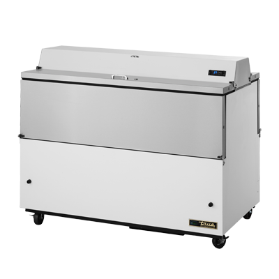 Culinary artistry redefined with True Manufacturing's TMC-58-DS-HC Milk Cooler / Station. This mobile milk cooler is designed to meet the demands of a commercial restaurant, offering convenience and efficiency. With its dual-sided stainless steel drop front/hold-open flip-up lids, accessing and organizing up to 16 crates of milk has never been easier. The locks ensure the safety and security of your inventory. The white vinyl exterior gives it a clean and professional look, while the aluminum interior with a stainless steel floor ensures durability and easy cleaning. The three heavy-duty floor racks provide ample storage space, and the digital thermometer allows for precise temperature control between 33 - 38F. Equipped with 4" castors, this milk cooler is easy to move around the kitchen. Made in the USA, this True Manufacturing milk cooler is cULus and UL EPH Classified, guaranteeing its quality and reliability. Upgrade your restaurant's milk storage with the TMC-58-DS-HC Milk Cooler / Station.