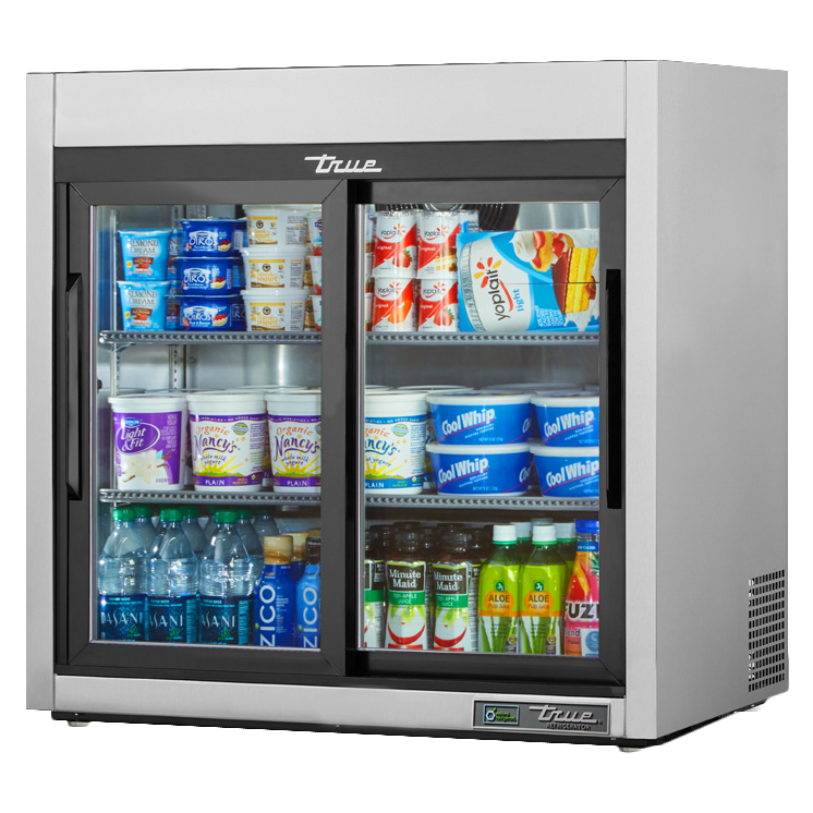 Master your restaurant's kitchen with the True Manufacturing TSD-09G-HC-LD Refrigerator Merchandiser. This countertop unit is designed to meet the needs of busy commercial kitchens, offering convenience and efficiency. With its two glass sliding doors, stainless steel front and sides, and clear coated aluminum interior with a stainless steel floor, this merchandiser is both durable and visually appealing. The three PVC coated wire shelves provide ample space for storing and displaying your products, while the LED interior lighting ensures optimal visibility. The TSD-09G-HC-LD also features leg levelers for easy installation and a 1/6 HP compressor for efficient cooling. Made in the USA and certified by cULus, UL EPH Classified, and CE, this True Manufacturing merchandiser is a reliable and high-quality addition to any commercial kitchen. Upgrade your restaurant's refrigeration capabilities with the TSD-09G-HC-LD Refrigerator Merchandiser.