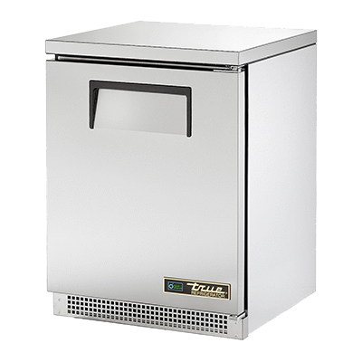 Equip your commercial kitchen with the True Manufacturing TUC-24-HC Undercounter Refrigerator. This stainless steel refrigerator is designed to meet the demands of a busy restaurant environment. With a temperature range of 33-38 F, it ensures that your ingredients stay fresh and at the optimal temperature. The clear coated aluminum interior with a stainless steel floor is not only durable but also easy to clean, making maintenance a breeze. The refrigerator features one stainless steel door and two shelves, providing ample storage space for your ingredients. The front breathing design allows for easy installation, while the four recessed castors make it easy to move the refrigerator around your kitchen. With its energy-efficient 1/6 HP compressor and R290 Hydrocarbon refrigerant, this refrigerator is not only environmentally friendly but also helps you save on energy costs. Made in the USA and ENERGY STAR certified, the True Manufacturing TUC-24-HC Undercounter Refrigerator is a reliable and efficient choice for any commercial restaurant.