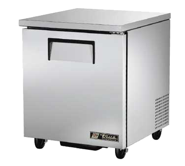 Master the art of cooking with the True Manufacturing TUC-27-HC Undercounter Reach-In Refrigerator. This top-of-the-line refrigerator is designed to meet the demanding needs of commercial restaurants. With its stainless steel top and sides, it not only looks sleek and professional but also ensures durability and easy cleaning. The clear coated aluminum interior with a stainless steel floor provides a hygienic and spacious storage space for your ingredients. The refrigerator maintains a temperature range of 33 - 38F, keeping your perishable items fresh and ready for use. Equipped with a stainless steel door and two shelves, this unit offers ample storage capacity. The 5" castors allow for easy mobility, making it convenient to move the refrigerator wherever it's needed. Made in the USA, this True Manufacturing refrigerator is not only reliable but also energy-efficient, thanks to its R290 Hydrocarbon refrigerant. Upgrade your kitchen with the TUC-27-HC and experience the difference in performance and quality.