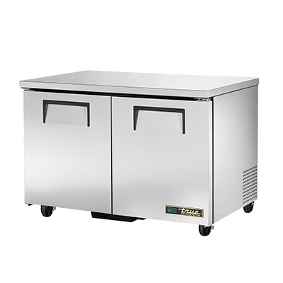 Deliver food perfection with the True Manufacturing TUC-48-HC Refrigerator. This undercounter reach-in refrigerator is designed to meet the demanding needs of commercial restaurants. With its stainless steel top and sides, it not only looks sleek but also ensures durability and easy cleaning. The two stainless steel doors provide easy access to the spacious interior, which features four shelves and an aluminum interior with a stainless steel floor. The temperature range of 33-38 F ensures that your ingredients and beverages stay fresh and chilled. The 5" castors make it easy to move the refrigerator for cleaning or rearranging. Made in the USA, this refrigerator is not only reliable but also energy-efficient, thanks to the R290 Hydrocarbon refrigerant and 1/5 HP compressor. Trust True Manufacturing to deliver the quality and performance your restaurant needs.