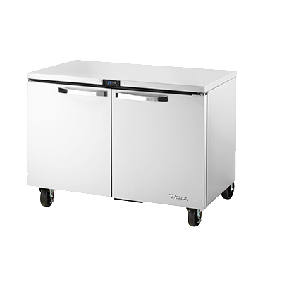 Boost your restaurant's performance with the True Manufacturing TUC-48-HC~SPEC3 Undercounter Reach-In Refrigerator. This top-of-the-line refrigerator is designed to meet the demanding needs of commercial kitchens. With its SPEC Package 3, it offers exceptional durability and functionality. The 16-gauge stainless steel top, sides, and back ensure long-lasting performance, while the stainless steel interior and heavy-duty stainless steel doors provide a sleek and professional look. The electronic temperature control with a digital display allows for precise temperature management, keeping your ingredients fresh and ready for use. The four shelves offer ample storage space, and the door lock provides added security. Equipped with 5" castors, this refrigerator is easy to move and clean. Made in the USA, this True Manufacturing refrigerator is not only reliable but also environmentally friendly, thanks to its R290 Hydrocarbon refrigerant. Upgrade your kitchen with the TUC-48-HC~SPEC3 and experience the difference in efficiency and performance.