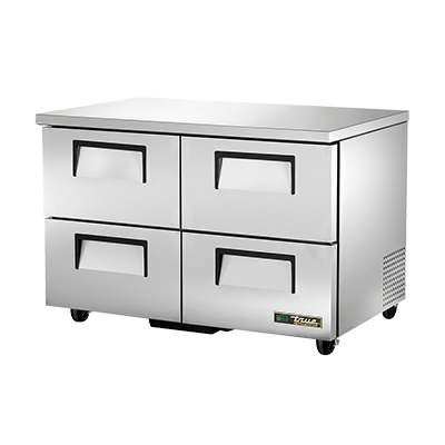 Unleash your inner chef with the True Manufacturing TUC-48D-4-HC Refrigerator. This undercounter reach-in refrigerator is a must-have for any commercial restaurant. With its stainless steel top and sides, it not only looks sleek and professional but is also durable and easy to clean. The four drawers provide ample storage space and can accommodate a 12" x 18" x 6" food pan, allowing you to keep your ingredients organized and easily accessible. The aluminum interior with a stainless steel floor ensures optimal temperature retention, while the R290 Hydrocarbon refrigerant and 1/5 HP compressor provide efficient cooling. With 5" castors, this refrigerator is easy to move and clean around. Made in the USA and certified by cULus, UL EPH Classified, and CE, you can trust in the quality and reliability of this True Manufacturing refrigerator. Upgrade your kitchen with the TUC-48D-4-HC and experience the convenience and efficiency it brings to your culinary endeavors.