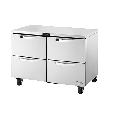 Mobilize your kitchen with the True Manufacturing TUC-48D-4-HC~SPEC3 Undercounter Refrigerator. This top-of-the-line refrigerator is designed to meet the demands of a busy commercial restaurant. With its SPEC Package 3, it offers a range of features that make it a valuable addition to any kitchen. The 16-gauge stainless steel top, sides, and back ensure durability and easy cleaning, while the stainless steel interior provides a hygienic storage space. The four drawers are spacious enough to accommodate a 12" x 18" x 6" food pan, allowing for efficient organization and easy access to ingredients. The electronic temperature control with a digital display ensures precise temperature management, keeping your perishable items fresh and safe. With its 5" castors, this refrigerator can be easily moved around for cleaning or rearranging. Made in the USA, this True Manufacturing refrigerator is cULus, UL EPH Classified, and CE certified, guaranteeing its quality and reliability. Upgrade your kitchen with the TUC-48D-4-HC~SPEC3 and experience the convenience and efficiency it brings to your restaurant operations.