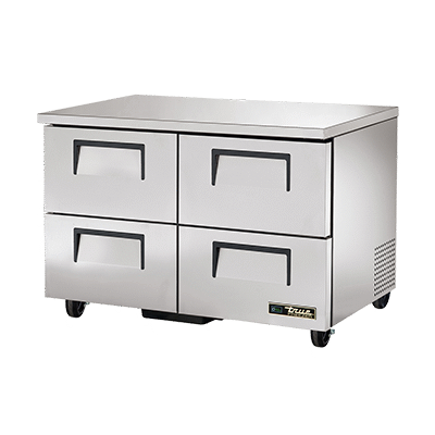 Boost your restaurant's performance with the True Manufacturing TUC-48F-D-4-HC Freezer. This undercounter reach-in freezer is designed to meet the demands of a busy commercial kitchen. With its stainless steel top and sides, it not only looks sleek but also ensures durability and easy cleaning. The freezer features four drawers, each capable of accommodating a 12" x 18" x 6" pan (pan not included), providing ample storage space for your ingredients. The aluminum interior with a stainless steel floor further enhances its durability and hygiene. Equipped with 5" castors, this freezer can be easily moved for cleaning or rearranging your kitchen layout. The TUC-48F-D-4-HC uses R290 Hydrocarbon refrigerant, which is not only environmentally friendly but also ensures efficient cooling. With a 1/2 HP compressor, this freezer delivers reliable performance, while the 115v/60/1-ph power supply ensures compatibility with standard outlets. Trust True Manufacturing, a reputable brand known for its quality and reliability, and invest in the TUC-48F-D-4-HC Freezer to enhance your restaurant's efficiency and productivity.