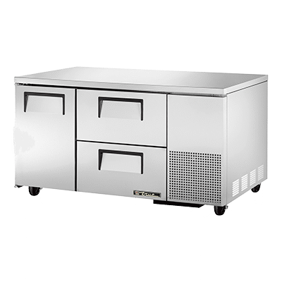 Elevate your culinary experience with the True Manufacturing TUC-60-32D-2-HC Undercounter Refrigerator. This top-of-the-line refrigerator is designed to meet the demanding needs of commercial restaurants. With its stainless steel top and sides, it not only looks sleek and professional but also ensures durability and easy cleaning. The refrigerator features a stainless steel door and two shelves, providing ample storage space for your ingredients. Additionally, it has two drawers that can accommodate two 12" x 20" x 8" food pans (not included), allowing for efficient organization and easy access to your ingredients. The aluminum interior with a stainless steel floor ensures optimal temperature retention, while the R290 Hydrocarbon refrigerant and 1/10 HP compressor guarantee energy efficiency. With its compact size and 5" castors, this undercounter refrigerator can be conveniently placed anywhere in your kitchen. Trust True Manufacturing, a reputable brand known for its quality and reliability, and invest in the TUC-60-32D-2-HC to enhance your restaurant's efficiency and productivity.