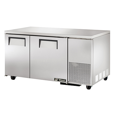 Realize kitchen dreams with the True Manufacturing TUC-60-32F-HC Freezer. This undercounter reach-in freezer is designed to meet the demands of a commercial restaurant, providing ample storage space while saving valuable floor space. With its stainless steel top and sides, this freezer not only looks sleek but also ensures durability and easy cleaning. The two stainless steel doors and four PVC coated wire shelves offer convenient access and organization for your frozen goods. The aluminum interior with a stainless steel floor guarantees hygiene and longevity. Equipped with 5" castors, this freezer can be easily moved for cleaning or rearranging. The side mount design and R290 Hydrocarbon refrigerant ensure efficient cooling and energy savings. Made in the USA, this True Manufacturing freezer is cULus and UL EPH Classified, assuring you of its quality and reliability. Upgrade your kitchen with the TUC-60-32F-HC Freezer and experience the convenience and efficiency it brings to your restaurant operations.
