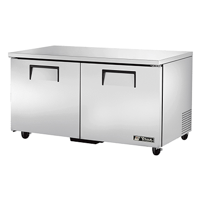 Optimize your kitchen efficiency with the True Manufacturing TUC-60-HC Refrigerator. This undercounter reach-in refrigerator is designed to meet the demands of a commercial restaurant setting. With its stainless steel top and sides, it not only looks sleek but also ensures durability and easy cleaning. The two stainless steel doors provide easy access to the spacious interior, which features four shelves and an aluminum interior with a stainless steel floor. The temperature range of 33-38 F ensures that your ingredients stay fresh and properly stored. The 5" castors make it easy to move the refrigerator around for cleaning or rearranging. Made in the USA, this refrigerator is not only reliable but also energy-efficient, thanks to the R290 Hydrocarbon refrigerant and 1/4 HP compressor. Upgrade your kitchen with the True Manufacturing TUC-60-HC Refrigerator and experience improved organization and efficiency.