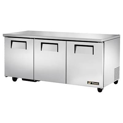 Elevate your dining experience with the True Manufacturing TUC-72-HC Refrigerator. This undercounter reach-in refrigerator is designed to meet the demands of a commercial restaurant setting. With its stainless steel top and sides, it not only looks sleek but also ensures durability and easy cleaning. The three stainless steel doors provide ample storage space, while the six adjustable PVC wire shelves allow for flexible organization. The aluminum interior with a stainless steel floor guarantees optimal temperature retention and hygiene. Equipped with 5" castors, this refrigerator can be easily moved for cleaning or rearranging. The TUC-72-HC uses R290 Hydrocarbon refrigerant, which is not only environmentally friendly but also ensures efficient cooling. With a 1/4 HP compressor, this refrigerator delivers reliable performance. Made in the USA and certified by cULus and UL EPH Classified, you can trust the quality and safety of this True Manufacturing refrigerator. Upgrade your restaurant's refrigeration system with the TUC-72-HC and enjoy enhanced efficiency and convenience.