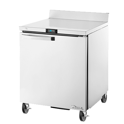 Unleash gastronomic brilliance with the True Manufacturing TWT-27-HC~SPEC3 Refrigerated Counter. This work top refrigerator is a must-have for any commercial restaurant. With its SPEC Package 3, it offers a 16-gauge stainless steel top with a rear splash, ensuring durability and easy cleaning. The stainless steel front, sides, and back add a sleek and professional look to your kitchen. Inside, you'll find a stainless steel interior with two shelves, providing ample storage space for your ingredients. The heavy-duty stainless steel door comes with a lock for added security. The electronic temperature control with a digital display allows you to easily monitor and adjust the temperature to keep your food fresh. With its 5" castors and rear mount, this refrigerator is easy to move and position in your kitchen. Made in the USA, this True Manufacturing Refrigerated Counter is a reliable and high-quality addition to your restaurant.