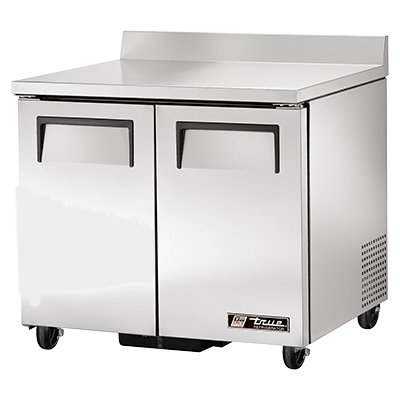 Unleash your kitchen's potential with the True Manufacturing TWT-36-HC Refrigerated Counter. This two-section work top refrigerator is designed to meet the demands of a busy commercial restaurant. With its stainless steel top and rear splash, it provides a durable and easy-to-clean surface for food preparation. The two stainless steel doors and four shelves offer ample storage space for ingredients and prepared dishes. The aluminum interior with a stainless steel floor ensures optimal temperature retention and hygiene. Equipped with 5" castors, this refrigerator is easy to move and position wherever it's needed. The TWT-36-HC uses R290 Hydrocarbon refrigerant, which is not only environmentally friendly but also helps to reduce energy consumption. Made in the USA and certified by cULus and UL EPH Classified, this True Manufacturing Refrigerated Counter is a reliable and efficient addition to any commercial kitchen.