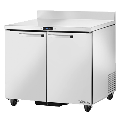 Kitchen innovation at its best, True Manufacturing presents the TWT-36-HC~SPEC3 Refrigerated Counter. This two-section work top refrigerator is a game-changer for commercial restaurants. With its SPEC Package 3, it offers a 16-gauge stainless steel top with a rear splash, ensuring durability and easy cleaning. The stainless steel front, sides, and back add a sleek and professional look to any kitchen. Inside, you'll find a stainless steel interior with four shelves, providing ample storage space for all your ingredients. The two heavy-duty stainless steel doors come with steel handles and a door lock for added security. The electronic temperature control with a digital display allows for precise temperature management, ensuring your food stays fresh. With 5" castors and rear mount, this refrigerator is easy to move and position. It runs on R290 Hydrocarbon refrigerant, making it energy-efficient and environmentally friendly. Trust True Manufacturing for top-quality refrigeration solutions that meet the demands of a busy commercial kitchen.