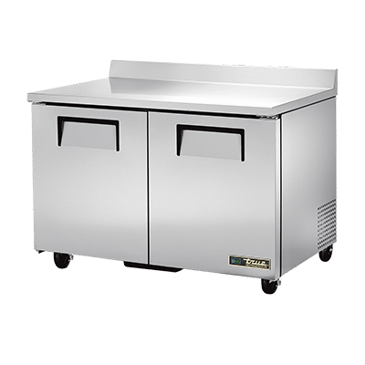 Introducing the True Manufacturing TWT-48-HC Refrigerated Counter, Work Top - the perfect addition to drive restaurant profitability. This two-section work top refrigerator is designed to optimize your commercial kitchen's efficiency and productivity. With its stainless steel top and rear splash, as well as front and sides, this unit is not only durable but also easy to clean. The two stainless steel doors provide ample storage space, while the four PVC coated wire shelves allow for organized storage of ingredients and supplies. The aluminum interior with a stainless steel floor ensures long-lasting performance, even in the busiest kitchen environments. Equipped with 5" castors and a rear mount, this refrigerator is easy to move and position wherever it's needed. Powered by a 1/5 HP motor and utilizing R290 Hydrocarbon refrigerant, this unit is energy-efficient and environmentally friendly. Invest in the True Manufacturing TWT-48-HC Refrigerated Counter, Work Top and experience enhanced productivity and profitability in your restaurant. Made in the USA, this unit guarantees authenticity and quality.