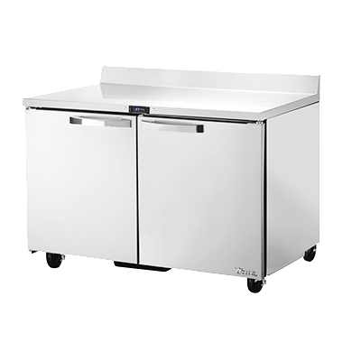 Empower your kitchen staff with the True Manufacturing TWT-48-HC~SPEC3 Refrigerated Counter. This work top refrigerator is a must-have for any commercial restaurant. With its SPEC Package 3, it offers a 16-gauge stainless steel top with a rear splash, as well as a stainless steel front, sides, and back, ensuring durability and easy cleaning. The stainless steel interior and heavy-duty stainless steel doors further enhance its longevity. The electronic temperature control with a digital display allows for precise temperature management, while the four PVC coated wire shelves provide ample storage space. The TWT-48-HC~SPEC3 also features a door lock for added security. With its 5" castors and rear mount, this refrigerator is easy to move and position. Made in the USA, this True Manufacturing work top refrigerator is cULus, UL EPH Classified, and CE certified, guaranteeing its quality and safety. Upgrade your kitchen with this reliable and efficient refrigerated counter.