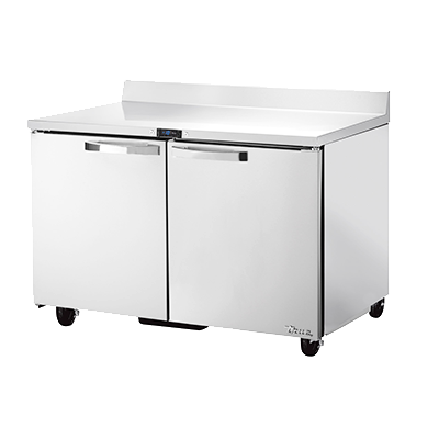 Enhance your commercial kitchen with the True Manufacturing TWT-48F-HC~SPEC3 Freezer Counter. This two-section work top freezer is designed to meet the demands of a busy restaurant environment. With a temperature range of -10F, it ensures that your ingredients and prepared dishes stay frozen and fresh. The SPEC Package 3 includes a 16-gauge stainless steel top with a splash, as well as stainless steel front, sides, and back, providing durability and easy cleaning. The stainless steel interior and heavy-duty stainless steel doors further enhance the unit's longevity. With four adjustable PVC wire shelves, you can customize the storage space to fit your needs. The electronic temperature control with a digital display allows for precise temperature management. Equipped with 5" castors, this freezer counter is easy to move and clean around. Made in the USA and ENERGY STAR certified, the True Manufacturing TWT-48F-HC~SPEC3 is a reliable and efficient addition to any commercial kitchen.