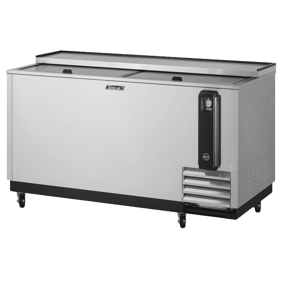 Kitchen innovation at its best, the Turbo Air TBC-65SD-N6 Bottle Cooler is a must-have for any commercial restaurant. With its sleek stainless steel exterior and interior walls, this bottle cooler not only looks great but is also built to last. The self-cleaning condenser ensures optimal performance and reduces maintenance needs, while the galvanized steel interior top provides added durability. The TBC-65SD-N6 features four adjustable dividers, allowing you to organize your bottles efficiently. The built-on removable bottle cap opener and catcher make it easy to serve your customers quickly. The two sliding lids provide easy access to the contents, while the stainless steel countertop adds a touch of elegance. Equipped with a side mount compressor and front breathing design, this bottle cooler is perfect for tight spaces. With its energy-efficient R600a Hydrocarbon refrigerant and 1/5 HP motor, the TBC-65SD-N6 is both environmentally friendly and cost-effective. Upgrade your restaurant's beverage service with the Turbo Air TBC-65SD-N6 Bottle Cooler.