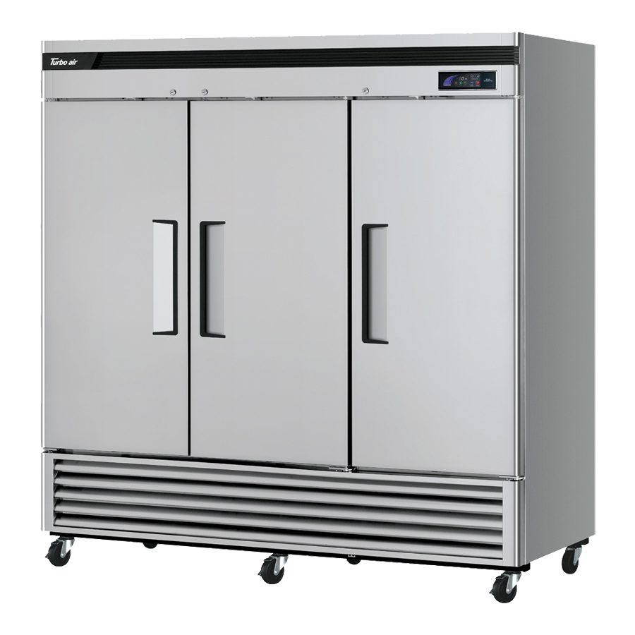 Unleash your inner chef with the Turbo Air TSF-72SD-N Freezer, Reach-In. This super deluxe freezer is perfect for commercial restaurant use, offering a spacious 63.8 cu. ft. capacity to store all your ingredients and frozen goods. The stainless steel front and side, along with the galvanized back and top of the cabinet, ensure durability and easy cleaning. With three hinged solid doors featuring recessed handles, accessing your items is a breeze. The nine adjustable stainless steel wire shelves provide ample storage space and organization options. The exterior LED digital thermometer allows you to monitor the temperature at a glance, while the door-open alarm beeps to prevent any accidental spoilage. The self-diagnostic monitoring system and smart defrost feature ensure optimal performance and energy efficiency. The Turbo Air TSF-72SD-N also comes equipped with a self-cleaning condenser and door locks for added convenience and security. With its bottom mount compressor and R290 Hydrocarbon refrigerant, this freezer is not only reliable but also environmentally friendly. Trust Turbo Air to deliver exceptional quality and performance for your commercial kitchen needs.