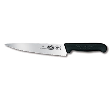 Efficiency for the Modern Kitchen with Victorinox Swiss Army, 5.2033.19-X1, Knife, Chef. This professional-grade chef's knife is a must-have for any commercial restaurant. With its 7-1/2" wavy edge, it effortlessly cuts through meats, vegetables, and fruits, saving you time and effort in food preparation. The Fibrox nylon handle provides a comfortable grip, ensuring precision and control while reducing the risk of accidents. Its slip-resistant design adds an extra layer of safety in a fast-paced kitchen environment. Packaged in a convenient clamshell/peggable package, this knife is ready to use right out of the box. NSF certified, it meets the highest standards of quality and hygiene. Whether you're a seasoned chef or a culinary enthusiast, the Victorinox Swiss Army Chef's Knife is the perfect tool to elevate your cooking skills and deliver exceptional dishes to your customers.