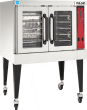 Culinary artistry redefined, the Vulcan VC4EC Convection Oven is a game-changer for commercial restaurants. With its computer controls and 99-hour timer, this electric, single-deck oven offers precise cooking control and flexibility. The oven comes with five nickel-plated racks, allowing for multiple dishes to be cooked simultaneously. Its standard depth and stainless steel construction ensure durability and easy maintenance, while the stainless steel door with a window allows chefs to monitor the cooking process without opening the oven. Standing at 25-3/4" high on stainless steel legs, this oven is the perfect addition to any professional kitchen. With a powerful 1/2 HP motor and 12.5 kW heating capacity, the Vulcan VC4EC delivers consistent and efficient cooking results. NSF, cUL, and UL certified, this convection oven guarantees safety and reliability. Elevate your culinary creations with the Vulcan VC4EC Convection Oven.