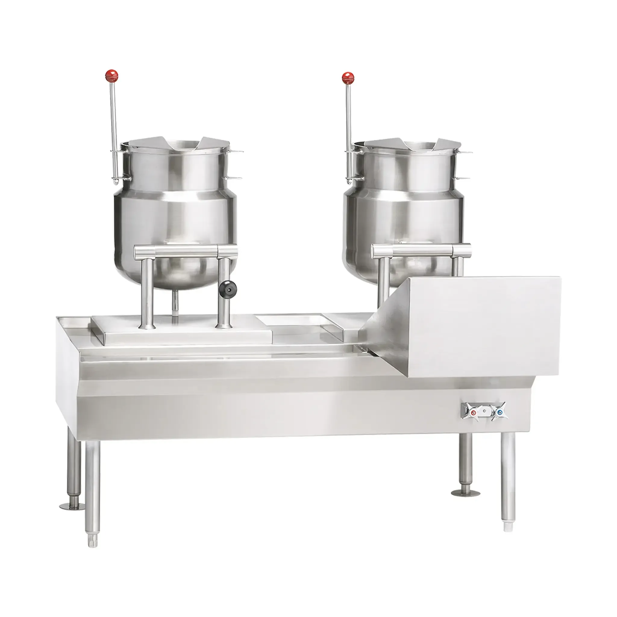 Unleash your inner chef with the Vulcan VEKT80/666 Kettle Cabinet Assembly. This electric kettle cabinet is a must-have for any commercial restaurant looking to elevate their cooking capabilities. With its three K6ETT electric tilting kettles, this assembly allows for efficient and precise cooking of large quantities of food. The 80" wide stand provides ample space for the kettles and ensures stability during use. Made with a stainless steel exterior, this cabinet is not only durable but also easy to clean, making it perfect for busy restaurant kitchens. The full-length drain trough allows for easy disposal of liquids, while the dual temperature feature ensures precise control over cooking temperatures. UL certified for safety, this kettle cabinet assembly from Vulcan is a reliable and efficient addition to any commercial kitchen.